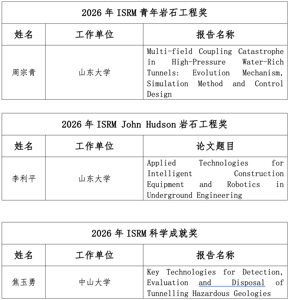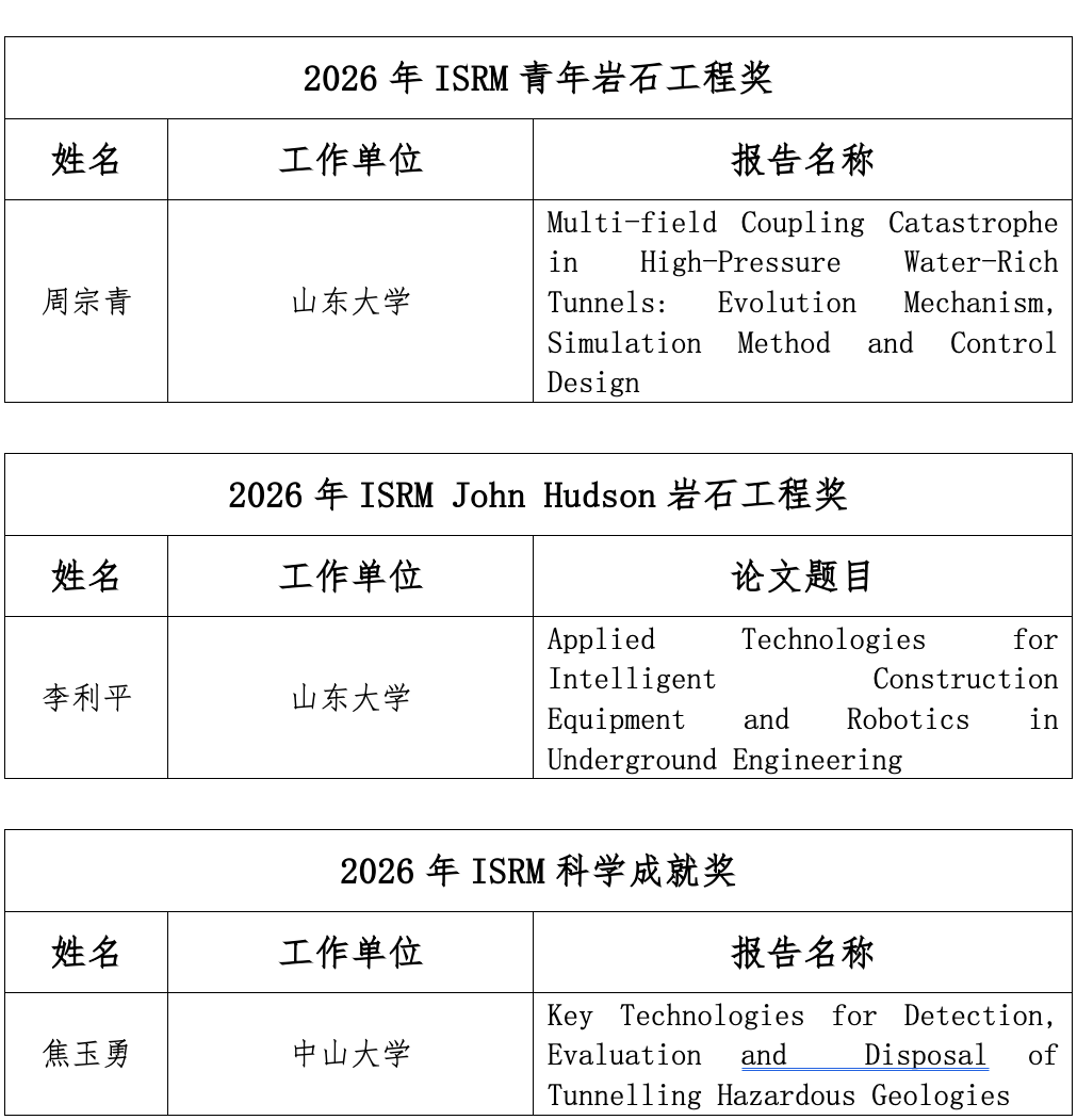 关于2025年度国际岩石力学与岩石工程学会(ISRM)奖项推选名单公示