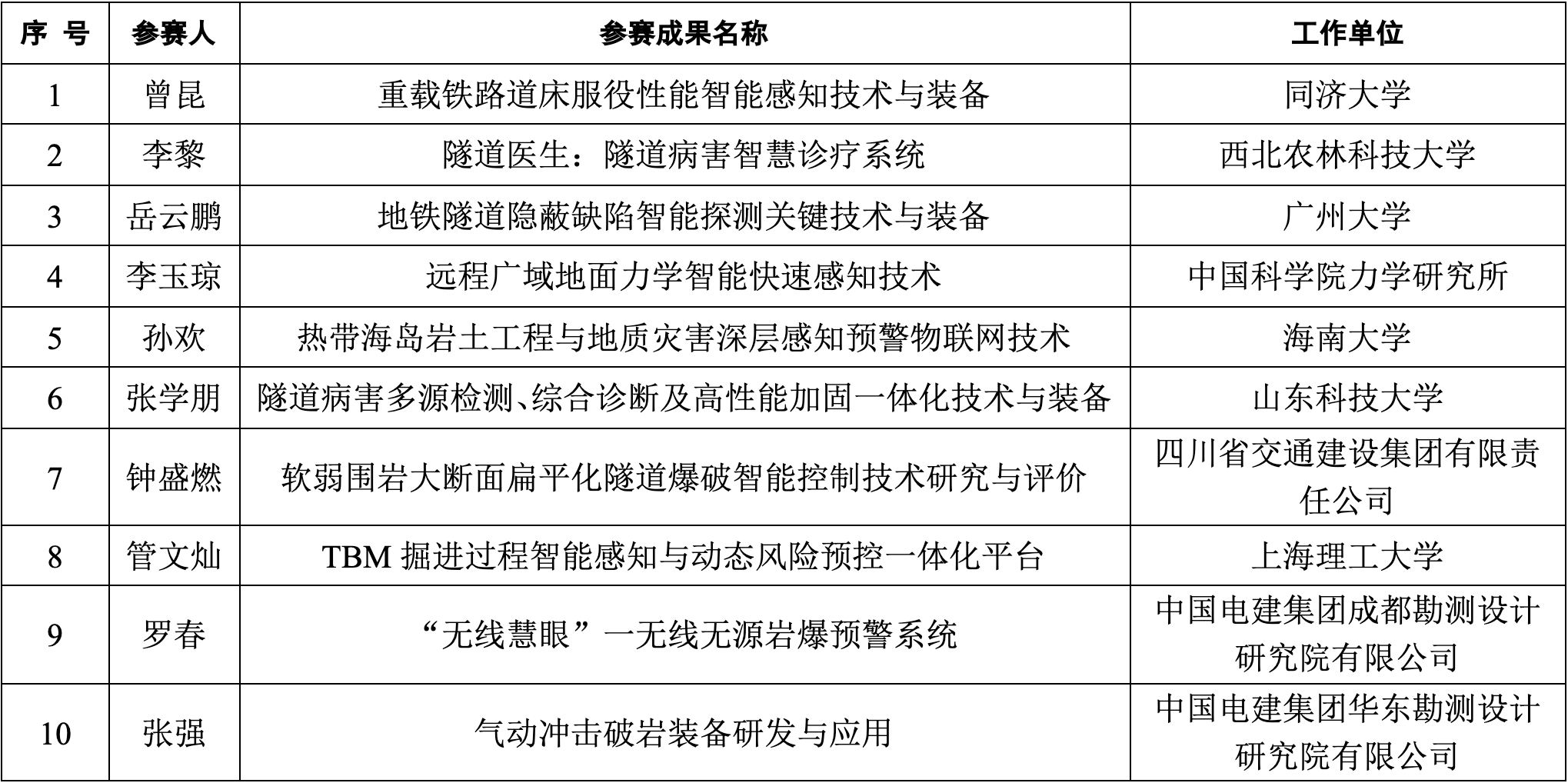 中国岩石力学与工程学会第十届青年岩石力学与岩土工程创新创业大赛决赛入围名单公示