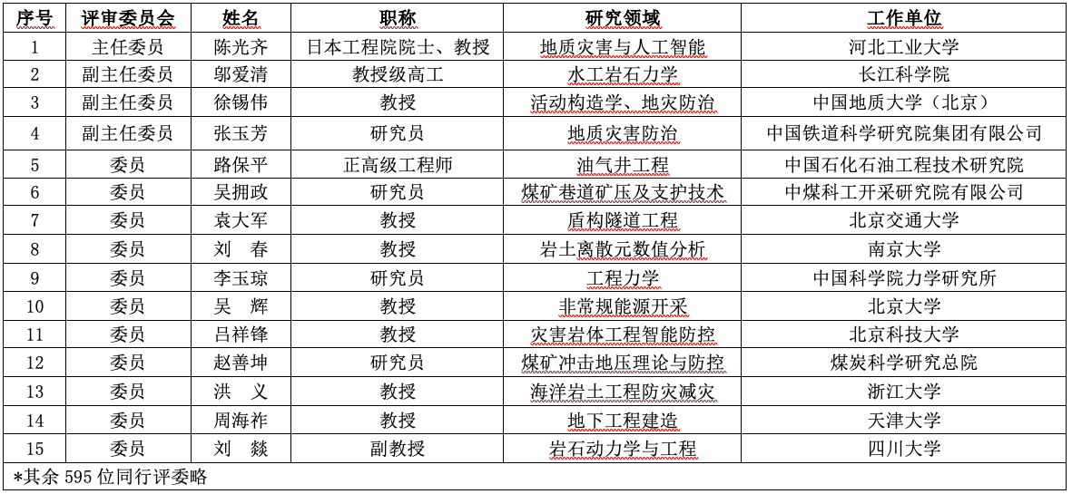 中国岩石力学与工程学会第十一届青年人才托举工程项目评审委员会专家名单