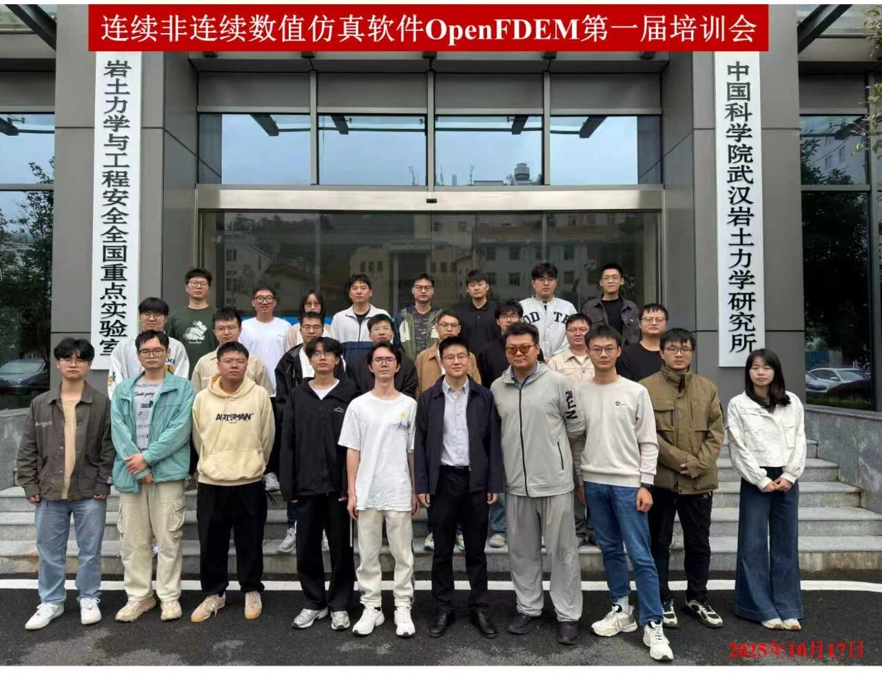 2025年10月17日,在China Rock 2025 在第二十二次中国岩石力学与工程学术年会期间,由中国岩石力学与工程学会和国际地质灾害与减灾协会共同主办、中国科学院武汉岩土力学研究所承办的“连续非连续数值仿真软件OpenFDEM培训班”在武汉市成功举办。培训吸引了来自中南大学、南华大学、天津大学、昆明理工大学、中国矿业大学等高校的学员参训。